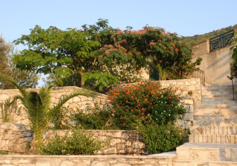 The construction is made out of high quality materials and is designed to withstand earthquakes. More than 18,000 handmade bricks crafted by a furnace artisan of the island were used for the external columns and walls decorations. The floor of the terraces (approx 200 m²) is of “antique rose” natural marble stones (cm. 30x30) purchased from the Italian company “Cotto Veneto” (Italy).
